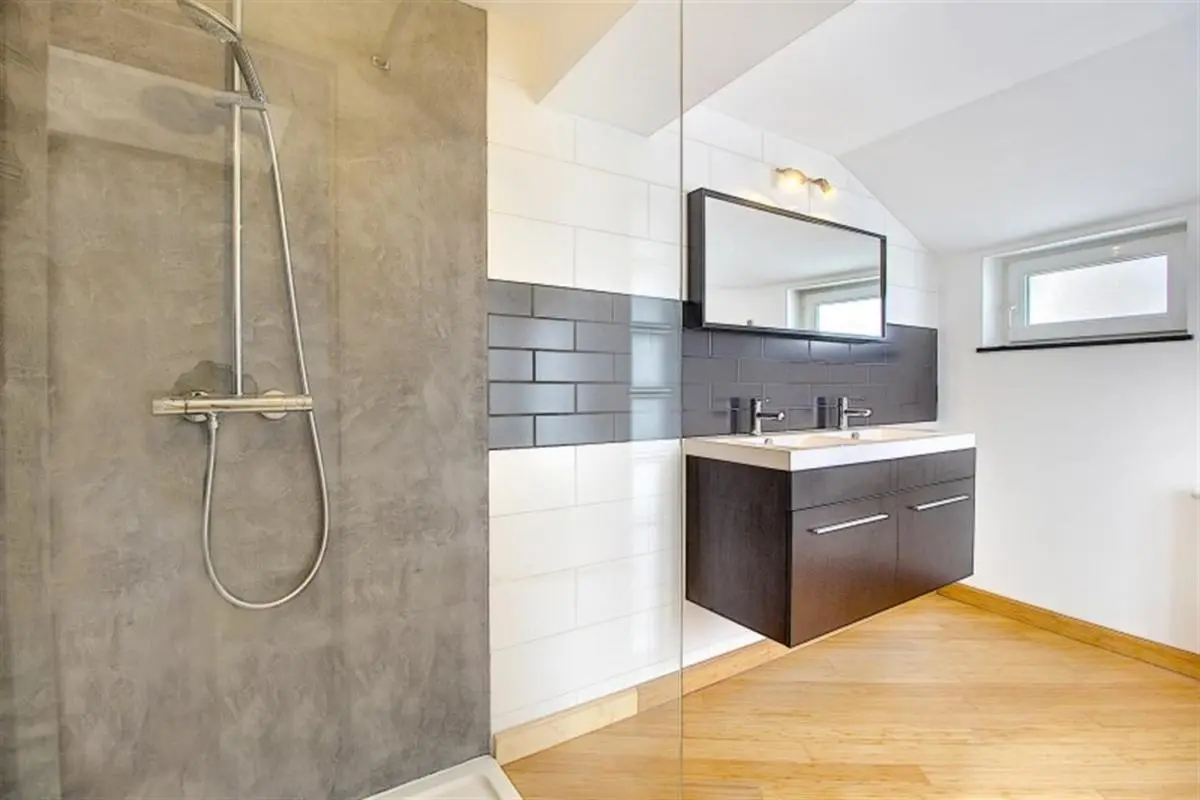 SOUS-OPTION .Au cœur de Genappe, charmante maison unifamiliale située à un jet de pierre de la Grand Place et de toutes les commodités citadines. La maison a subi une rénovation complète en 2012 (châssis, chauffage, électricité, salle de bain, sols, plafonds, murs, cuisine ...). Elle se compose, au rez-de-chaussée, d'un hall d'entrée, un séjour avec cassette, une cuisine américaine super équipée et d'une buanderie. Au 1er étage, un hall de nuit déversant une chambre, un dressing ainsi qu'une salle de bain avec douche à l'italienne. Au dernier étage, une chambre et un bureau. Aucun travaux à prévoir ! Possibilité d'obtenir les droits d'enregistrements réduits. Opportunité à saisir rapidement ! Faire offre à partir de 165.000 euros