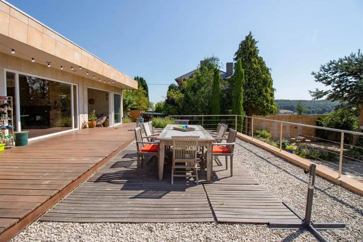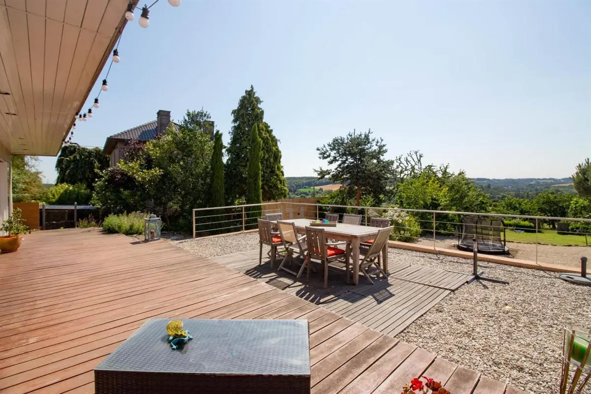 A la frontière d'Ittre dans un cadre verdoyant, surprenante propriété idéalement située au fond d’une impasse donnant vue sur champs et la vallée. Le terrain, situé à l'abris des regards et au calme le plus complet vous séduira par son splendide aménagement extérieur. La maison de plain pied se compose de pièces de vie orientées plein sud. Cette maison d'habitation présente de nombreuses possibilités d’aménagement en vue d'y exercer une profession libérale ou d'y faire un espace de stockage grâce à son annexe de +-63m² ou un autre espace de stockage pour 35 m². Cette demeure présente également des options intéressantes telles que 44 panneaux solaires apportant de l'électricité presque gratuite, des emplacement de parkings, également tant d'autres choses à découvrir lors d'une visite. Faire offre à partir de 450.000€. Coin de paradis à découvrir !