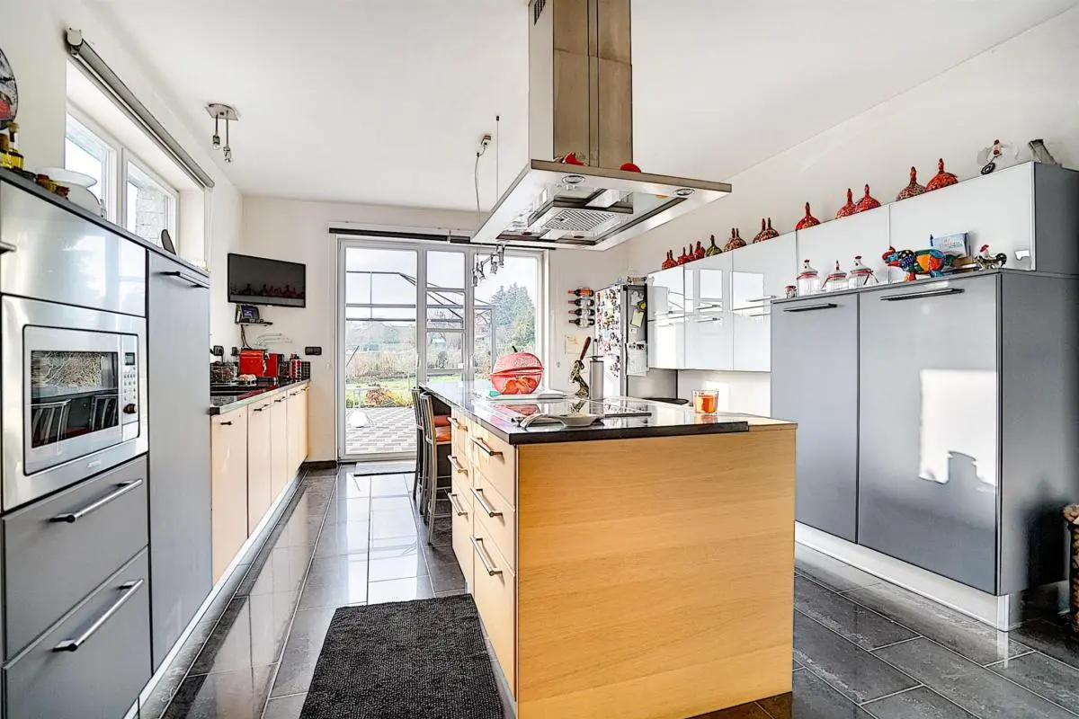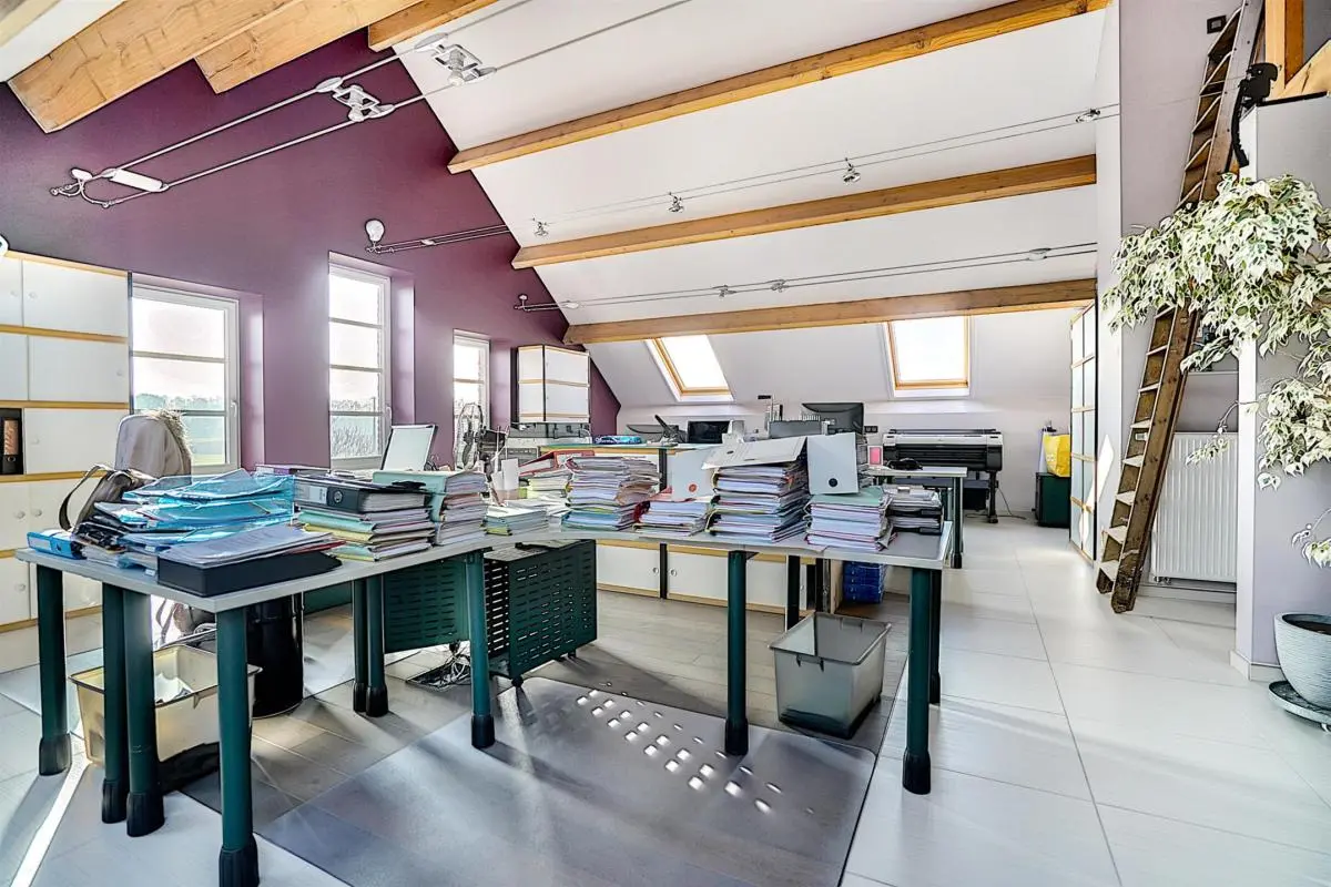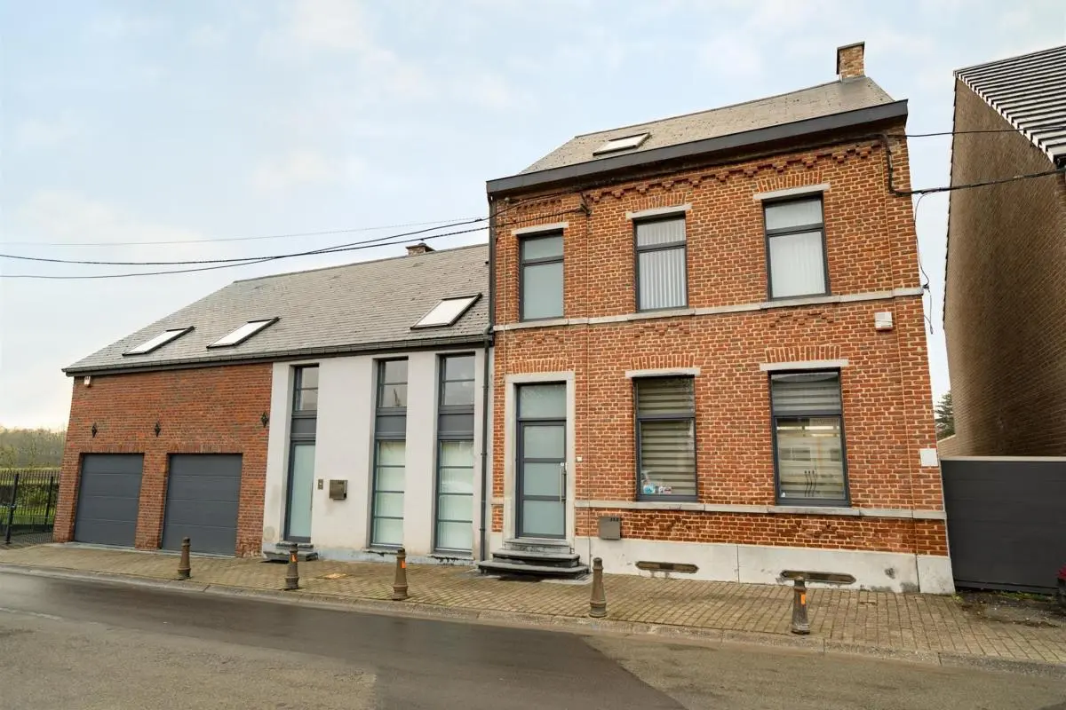Rénovation étonnante et complète vous proposant l'alliance de matériaux de qualité et un goût unique pour la décoration tendance. Vous serez charmés par les espaces et le confort que vous propose cette habitation de plus de 500 mètres carrés, en effet l'espace vous offre de nombreuses possibilités. Elle se compose comme suit, au rez-de-chaussée, un hall d’entrée, spacieux living, cuisine super-équipée, une buanderie, un WC séparé, une chambre et le double garage. Au 1er étage de la partie principale, hall de nuit desservant, un WC, une salle de bain, une salle de douche et deux chambres. Au dernier étage, spacieux grenier, déjà isolé, pouvant être aménagé en pièces supplémentaires. Au 1er étage de la seconde partie, accessible via l’habitation principale ou via un accès à rue, spacieux bureau avec salle de réunion, WC et kitchenette. Cet espace peut être affecté à une profession libérale ou fusionner avec la partie principale. Possibilité d'acquérir un terrain à bâtir en supplément ! Aucun travaux à prévoir suite à la rénovation totale en 2006. Deux garages doubles, un garage en bois pouvant servir de chalet de jardin ainsi que du parking aisé seront disponibles sur la propriété. Terrasse de plus de 160m² aménagée en 2017 et exposée sud-ouest. Conformité électrique. Citerne d’eau de pluie … Cette habitation n’attend plus que vous pour y apporter votre touche personnelle. Opportunité unique à saisir ! Faire offre à partir de 375.000 euros