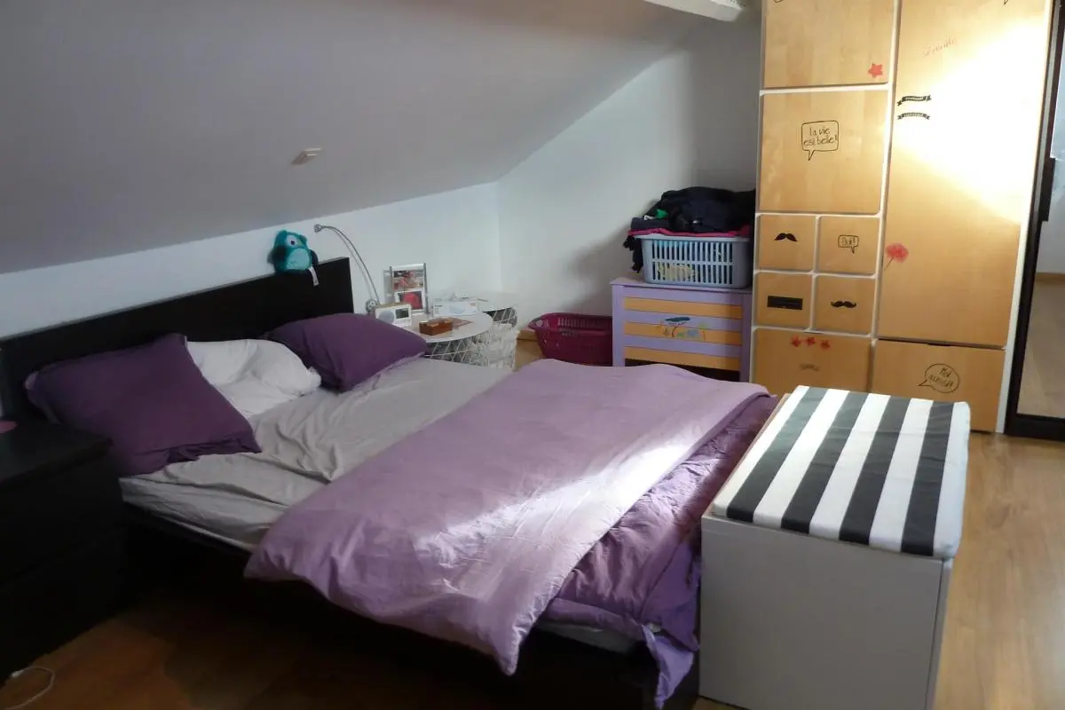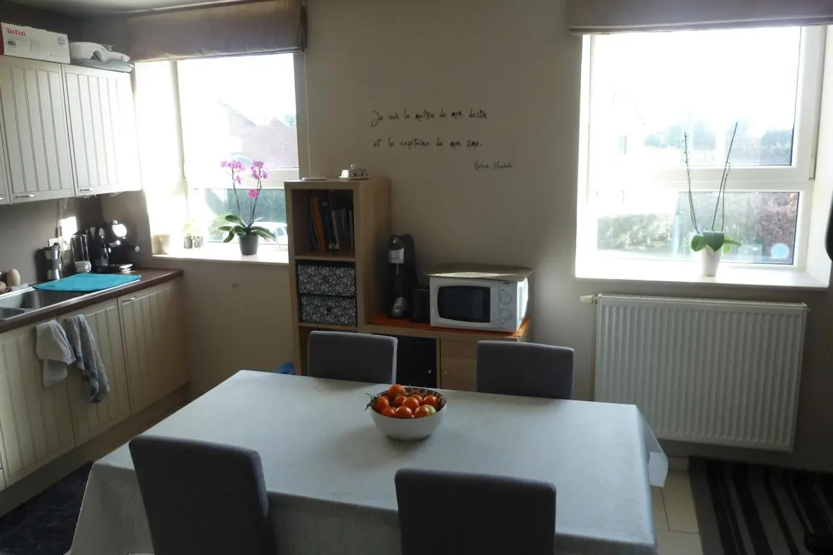 Proche des grands axes, tout en étant au calme avec facilité de parking, dans une copropriété de 3 appartements, magnifique duplex entièrement rénové et isolé avec des matériaux de qualité PEB B. Il se compose d'un salon, salle à manger - cuisine super équipée, salle de bain avec coin buanderie et WC. Grande chambre avec espace de rangement. Parlophonie. Pas de charges pour les communs ! Provision de charges privatives de 75 € : 50 € pour le chauffage et l'entretien de la chaudière, 25 € pour l'eau. Les luminaires et les stores font partie de la location. Libération possible à partir du 01/04/2020.