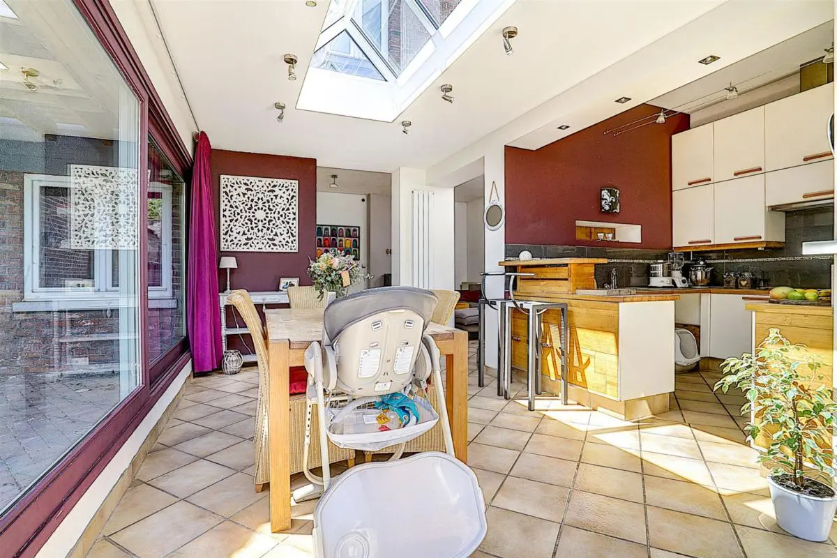 Au cœur d’Ophain-Bois-Seigneur-Isaac, spacieuse maison disposant de vastes volumes. Celle-ci dispose de deux entrées distinctes afin de pouvoir exercer une profession libérale ou avoir un second logement privatif pour un enfant ou parent. La maison principale se compose, au rez-de-chaussée, d’un hall d’entrée, un débarras, un salon ou bureau, un spacieux séjour avec véranda, une cuisine super-équipée, une buanderie et un WC. Au er étage, un hall de nuit desservant une chambre, une salle de bain et une salle de douche. Au second étage, un pallier desservant 3 chambres. Dans la seconde partie, au rez-de-chaussée, un hall d’entrée avec WC. Au 1er étage, un séjour avec cuisine ouverte et un accès à une terrasse. Au second étage, une chambre et une salle de douche. Au dernier étage, une mezzanine. L’habitation principale dispose de trois grandes terrasses dont une couverte avec vue sur le jardin. Aucuns travaux à prévoir ! Panneaux photovoltaïques avec certificats verts pour encore 6 ans. Opportunité unique à saisir ! Contactez-nous rapidement pour une visite.