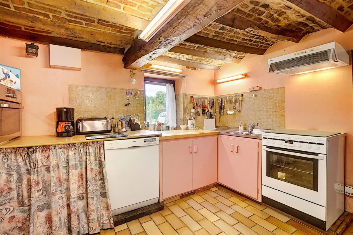 Magnifique fermette érigée sur un terrain de 80 ares avec bois et vue exceptionnelle à l'arrière sur les champs. Elle se compose d'un hall d'entrée avec espace buanderie, wc et salle de bain, salon, salle à manger, cuisine équipée, un bureau ou une chambre. A l'étage. Petites caves voûtées. Faire offre à partir de 270 000 €