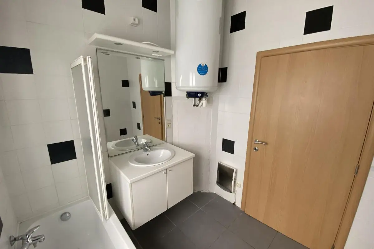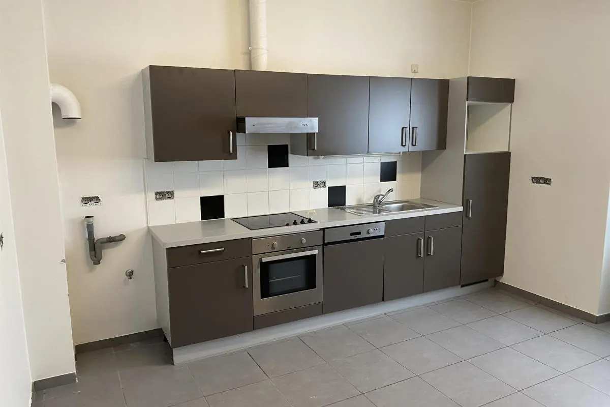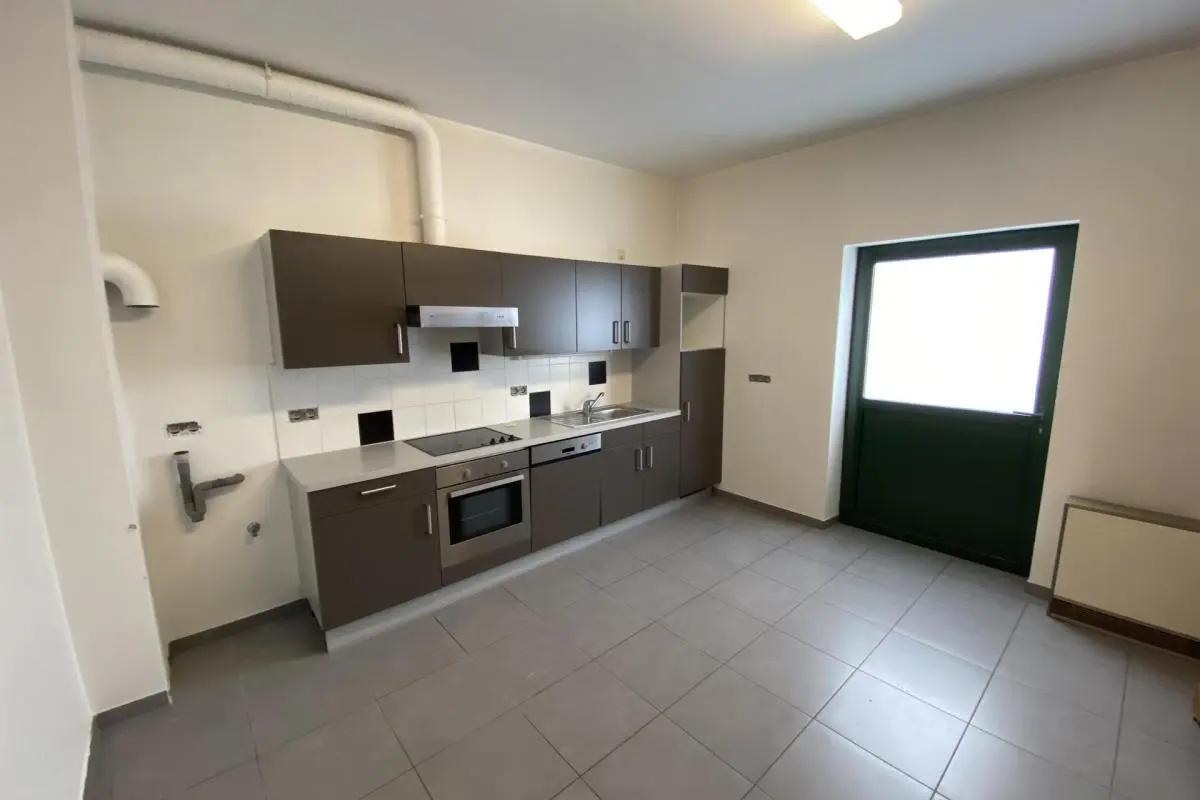 Spacieux appartement rez-de-chaussée se composant comme suit : hall d’entrée, spacieux living, cuisine super équipée, salle de bains avec douche et wc, 2 chambres. Système d'alarme. Chauffage électrique par accumulation, compteur bi-horaire, châssis double vitrage en alu. 50 euros de charges communes (entretien + électricité des communs). Disponible immédiatement, à saisir rapidement ! Garage en option pour 50 €