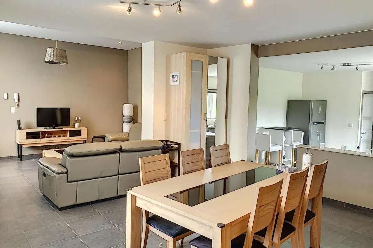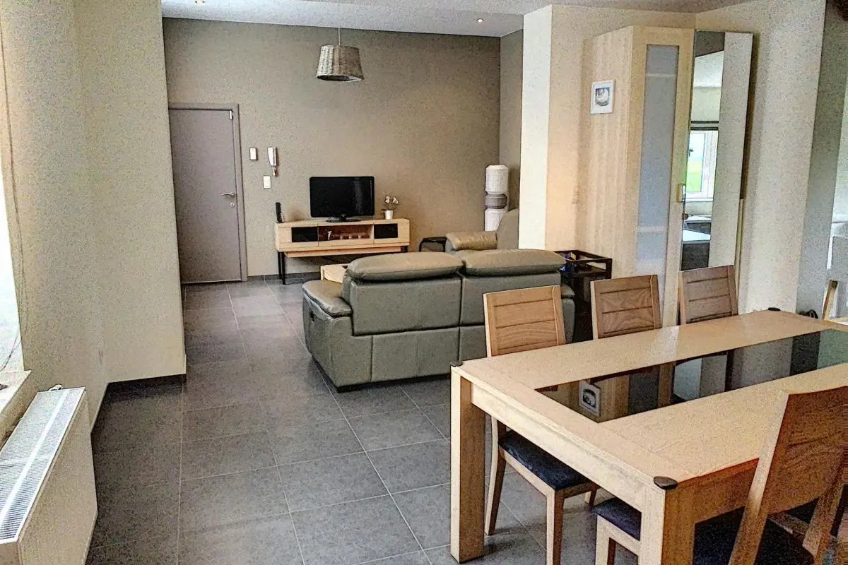 Magnifique appartement entièrement rénové avec terrasse, garage et parking. Charges de 85 €(provision de 25 € pour l'eau et 60 € pour le chauffage). électricité conforme. PEB B. libre au 31/07/2021.