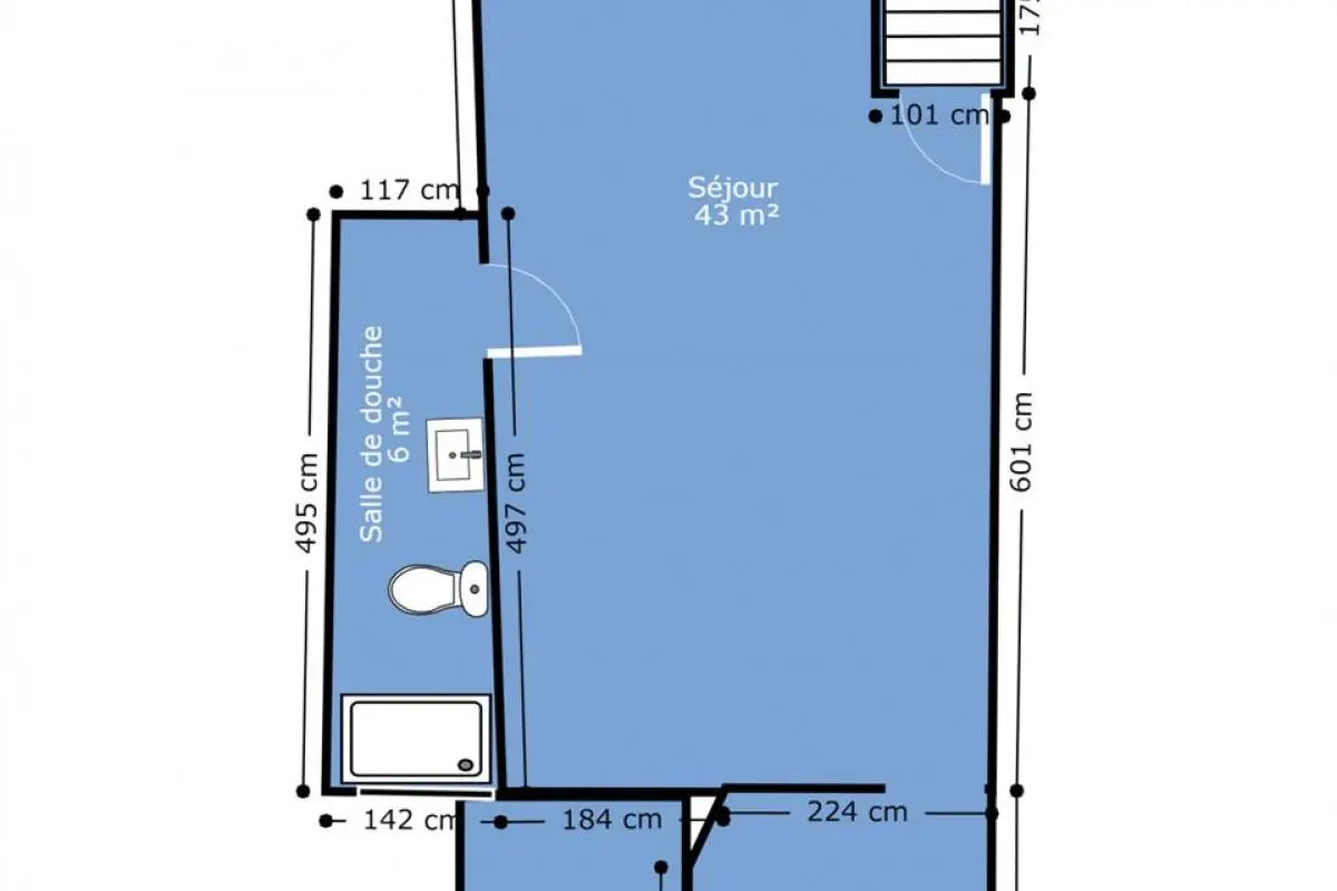 - Salle de séjour : 43 m²