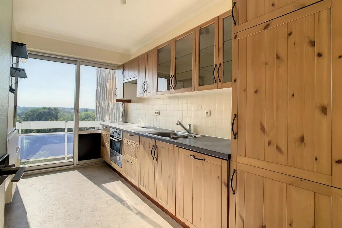 A proximité de toutes les facilités tel que magasins, gare, accès routiers, agréable appartement deux chambres à louer avec magnifique vue sur la verdure. Celui-ci est en bon état et se compose d'un hall d'entrée desservant la buanderie, la cuisine super-équipée ainsi que le living, la salle de douche ainsi que deux chambres. Ascenseur aux normes. Emplacement de parking extérieur privatif et cave privative. Les charges comprennent les communs, le chauffage, l'eau chaude et l'eau froide. Copropriété bien entretenue. Opportunité à saisir rapidement !