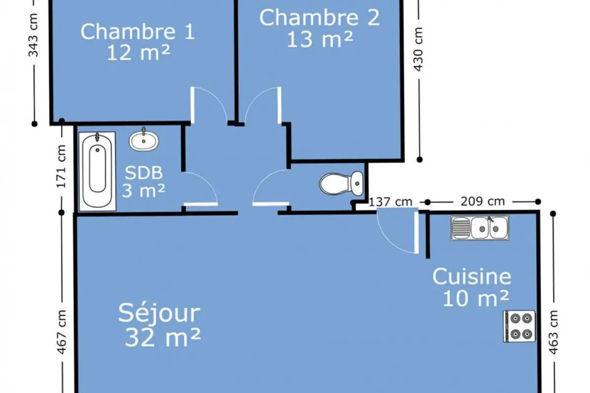 - Chambre 2 : 13 m²