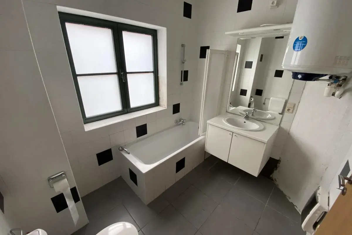 Spacieux appartement rez-de-chaussée se composant comme suit : hall d’entrée, spacieux living, cuisine super équipée, salle de bains avec douche et wc, 2 chambres. Système d'alarme. Chauffage électrique par accumulation, compteur bi-horaire, châssis double vitrage en alu. 50 euros de charges communes (entretien + électricité des communs). Disponible immédiatement, à saisir rapidement ! Garage en option obligatoire pour 50 €