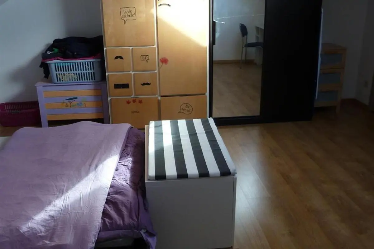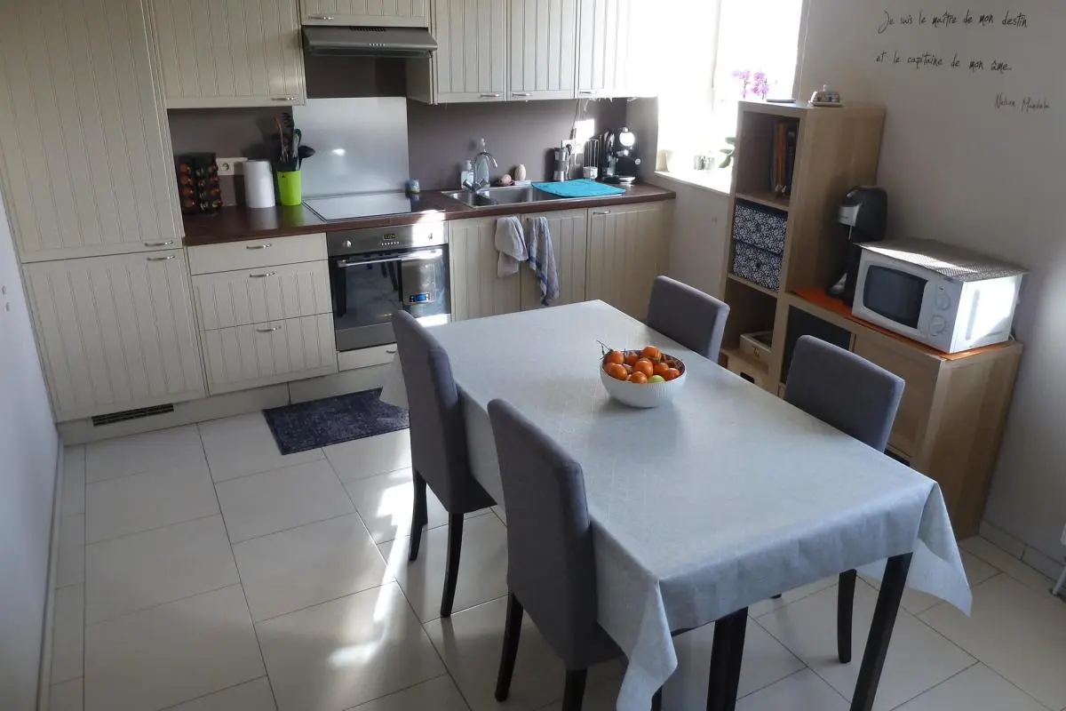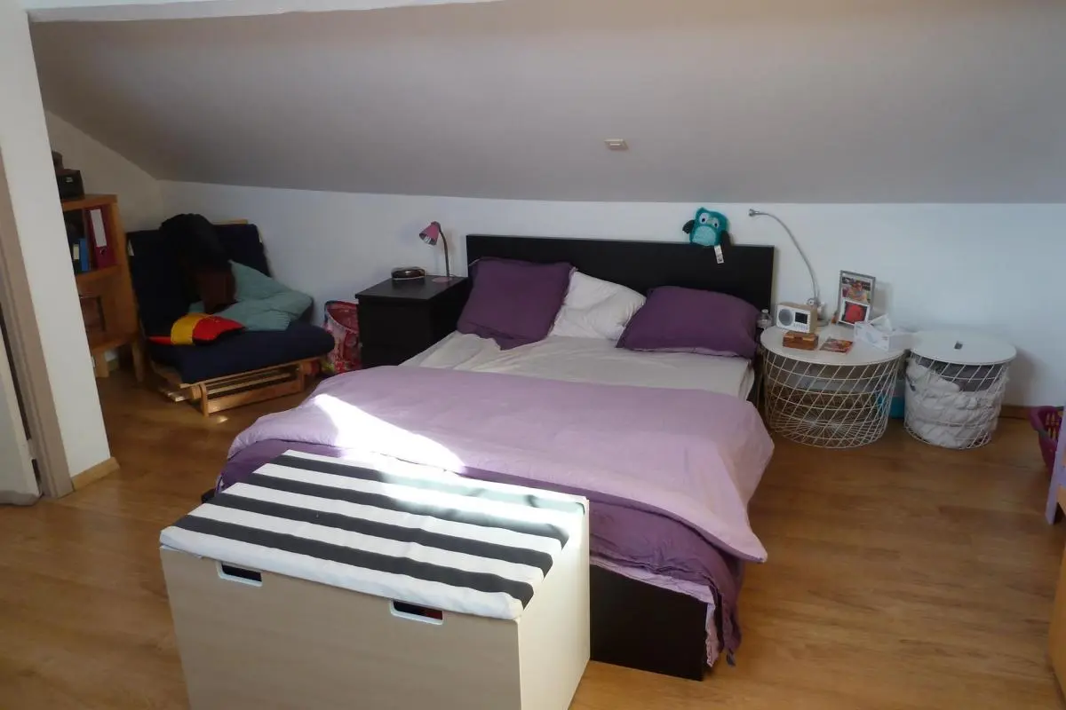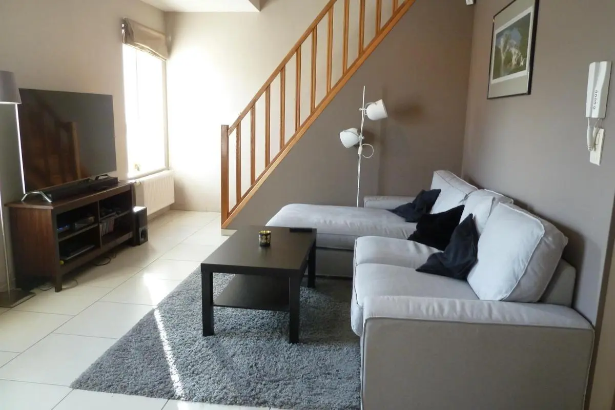 Proche des grands axes, tout en étant au calme avec facilité de parking, dans une copropriété de 3 appartements, magnifique duplex entièrement rénové et isolé avec des matériaux de qualité PEB B. Il se compose d'un salon, salle à manger - cuisine super équipée, salle de bain avec coin buanderie et WC. Grande chambre avec espace de rangement. Parlophonie. Pas de charges pour les communs ! Provision de charges privatives de 85 € : 60 € pour le chauffage et l'entretien de la chaudière, 25 € pour l'eau. Les luminaires et les stores font partie de la location. Libération possible à partir du 01/12/2021