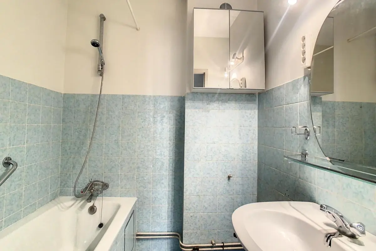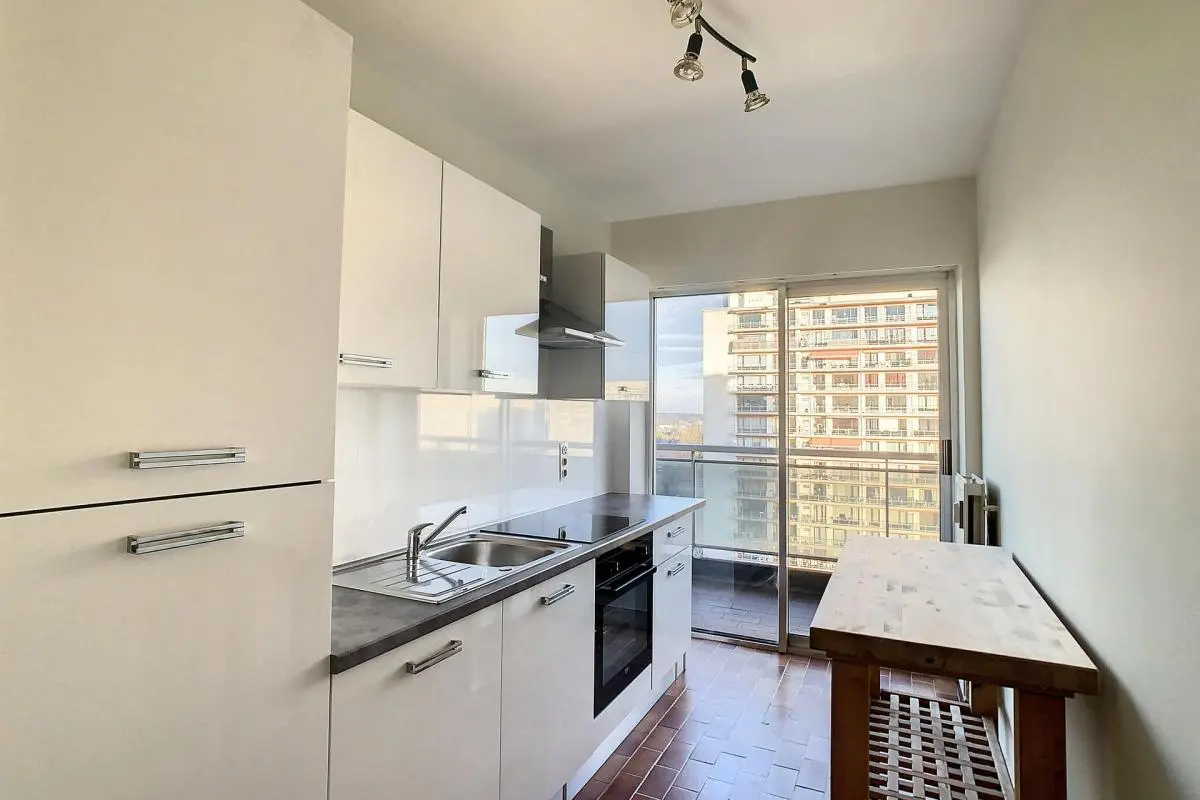Nous vous proposons cet appartement deux chambres avec terrasse profitant d’une situation stratégique. Il se compose d’un hall d’entrée avec placard, un wc séparé, un spacieux séjour, une cuisine équipée, une salle de bain et deux chambres. Parking sécurisé, grande terrasse et cave. Charges 175 € comprenant les communs, ascenseur, la provision de chauffage, eau chaude et eau froide. Opportunité à saisir. Libre immédiatement.