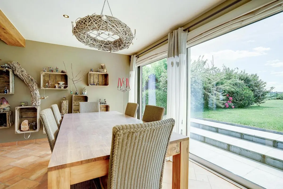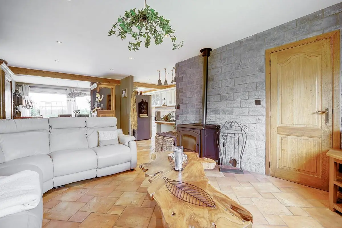 Splendide villa de plein pied construite sur un terrain de 9,50 ares complètement arboré, bucolique et offrant une vue exceptionnelle sur les champs. Le bien, en très bon état d'entretien, fera le bonheur de ses nouveaux propriétaires. Il se compose d'un hall d'entrée et de nuit desservant les chambres, la salle de bain et le garage. Un spacieux living avec cuisine équipée avec poêle aux pellets. Panneaux photovoltaïques. Faire offre à partir de 425 000 €