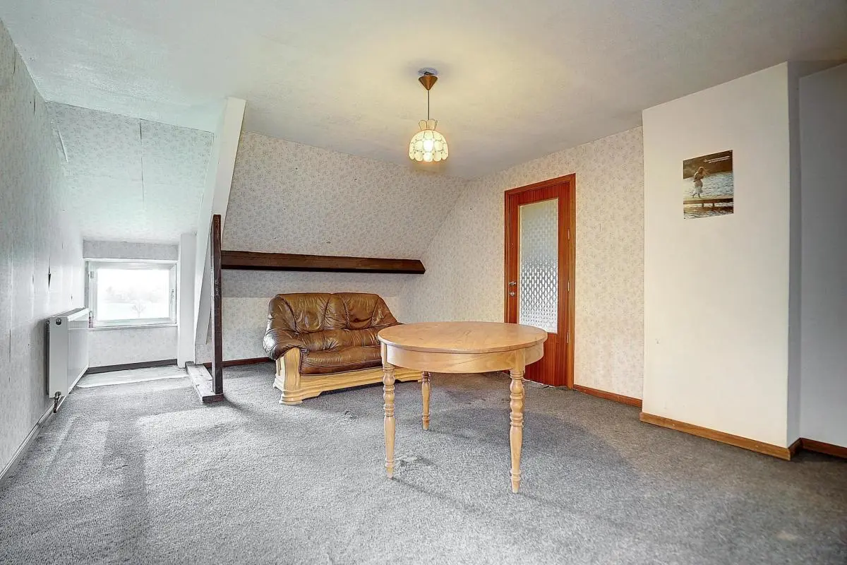Nous vous proposons cette splendide propriété érigée sur un terrain de 23 ares. Celle-ci se situe en hauteur et en recul par rapport à la rue, ce qui lui offre du calme avec vue imprenable sur les champs. Elle se compose comme suit au rez-de-chaussée : un hall d’entrée, un WC séparé, un grand séjour, une cuisine, 3 chambres, une salle de bains et deux bureaux. Au 1e étage, un appartement indépendant composé d’une cuisine, d’une salle-à-manger, un salon, deux chambres. 3 grands greniers de plus de 100m² vous permettront d’agrandir la maison ou d’avoir une surface de stockage. 3 grands garages ainsi qu’un grand parking complètent la propriété. Possibilité d'y exercer une profession libérale. Opportunité unique à saisir ! N’hésitez plus et contactez-nous pour un rendez-vous.