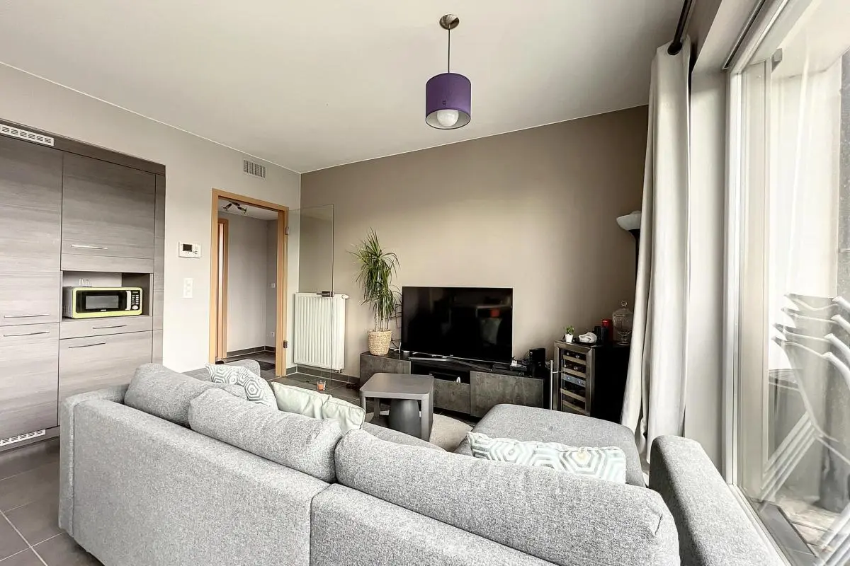 Dans un tout nouvel immeuble, agréable appartement une chambre avec emplacement de parking couvert à louer. L'appartement est en parfait état. Il se compose d'un hall d'entrée avec WC séparé, un séjour avec cuisine ouverte, une buanderie, une chambre et une salle de douche. Il dispose aussi de deux terrasses, l'une accessible via le séjour et l'autre via la chambre à coucher. Une cave individuelle est inclus. Porte blindée, vidéophonie ... A saisir rapidement !