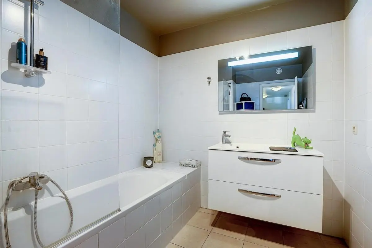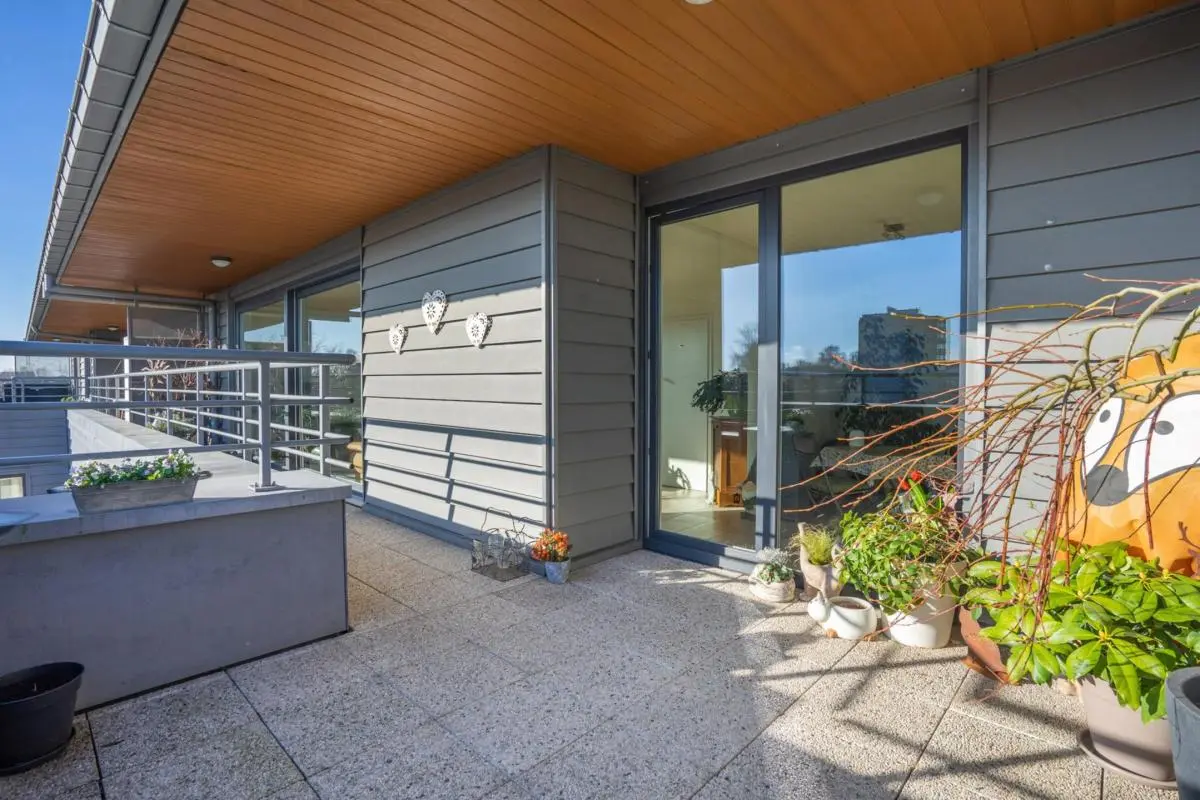 Magnifique penthouse 2 chambres avec deux terrasses, grande cave et parking intérieur privatif. Celui-ci possède un PEB A et se compose d'un hall d'entrée donnant sur le salon et la salle à manger ainsi que la spacieuse cuisine équipée et son arrière cuisine. Hall de nuit avec espace vestiaire desservant les deux chambres, la salle de bain ainsi qu'un wc séparé et un espace buanderie. Faire offre à partir de 325 000 €