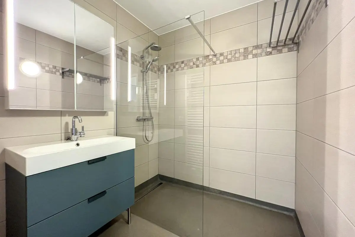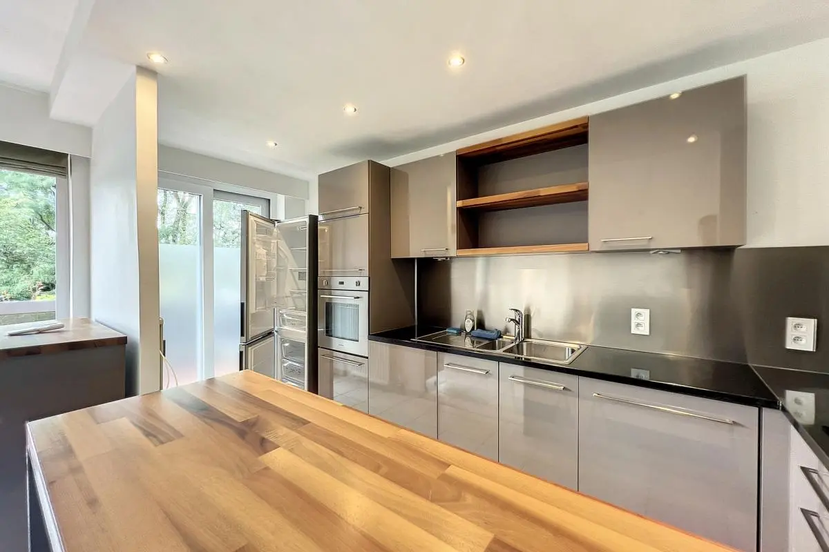 A proximité du Shopping, nous vous proposons cet agréable appartement rez-de-chaussée en excellent état. Celui-ci se compose d’un hall d’entrée avec vestiaire, d’un séjour, une cuisine super équipée (four, frigo/congélateur, lave-vaisselle, machine à laver/séchoir, taque et hotte aspirante), un hall de nuit desservant un débarras, un WC, une salle de douche à l’italienne et deux chambres dont une avec dressing. Grande terrasse et cave privative. Appartement entièrement rénové. Stores sur mesure, climatisation chaud/froid. Opportunité unique à saisir !