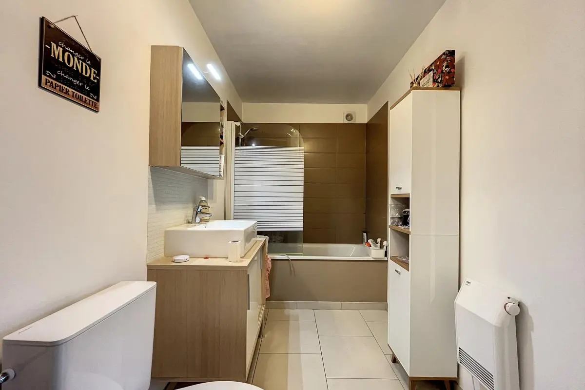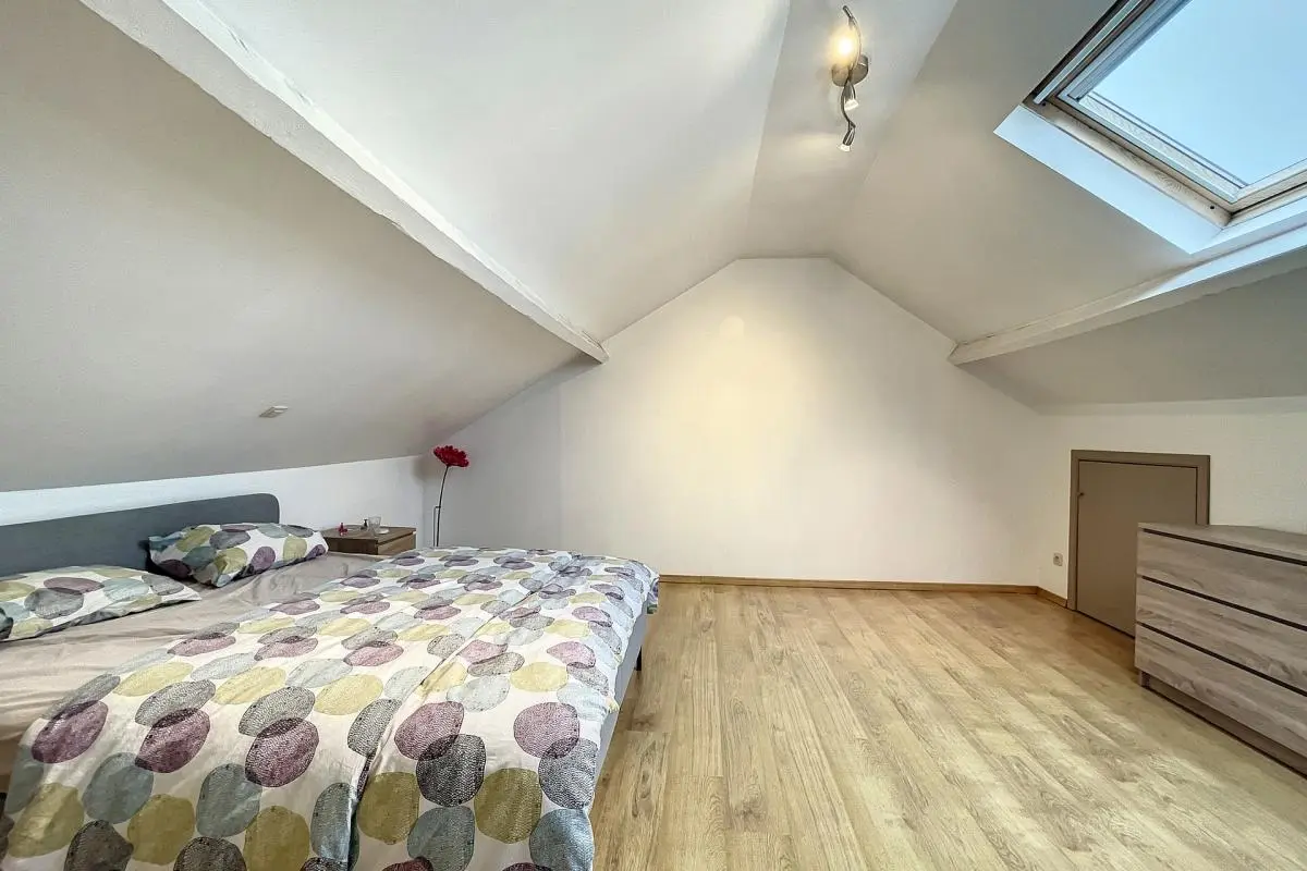 Proche des grands axes, tout en étant au calme avec facilité de parking, nous vous proposons ce magnifique appartement duplex à louer à partir du 01/01/2024. Situé dans une copropriété de 3 appartements, il est entièrement rénové et isolé avec des matériaux de qualité PEB B. Il se compose d'un salon, salle à manger - cuisine super équipée, salle de douche avec coin buanderie et WC. Grande chambre avec espace de rangement. Parlophone. Pas de charges pour les communs ! Provision de charges privatives de 85 € : 60 € pour le chauffage et l'entretien de la chaudière, 25 € pour l'eau. Les luminaires et les stores font partie de la location. https://nodalview.com/s/1b2scENzXFEQWFZwCm-eUq