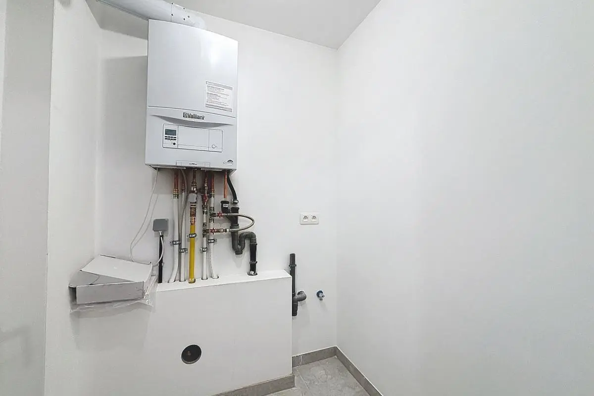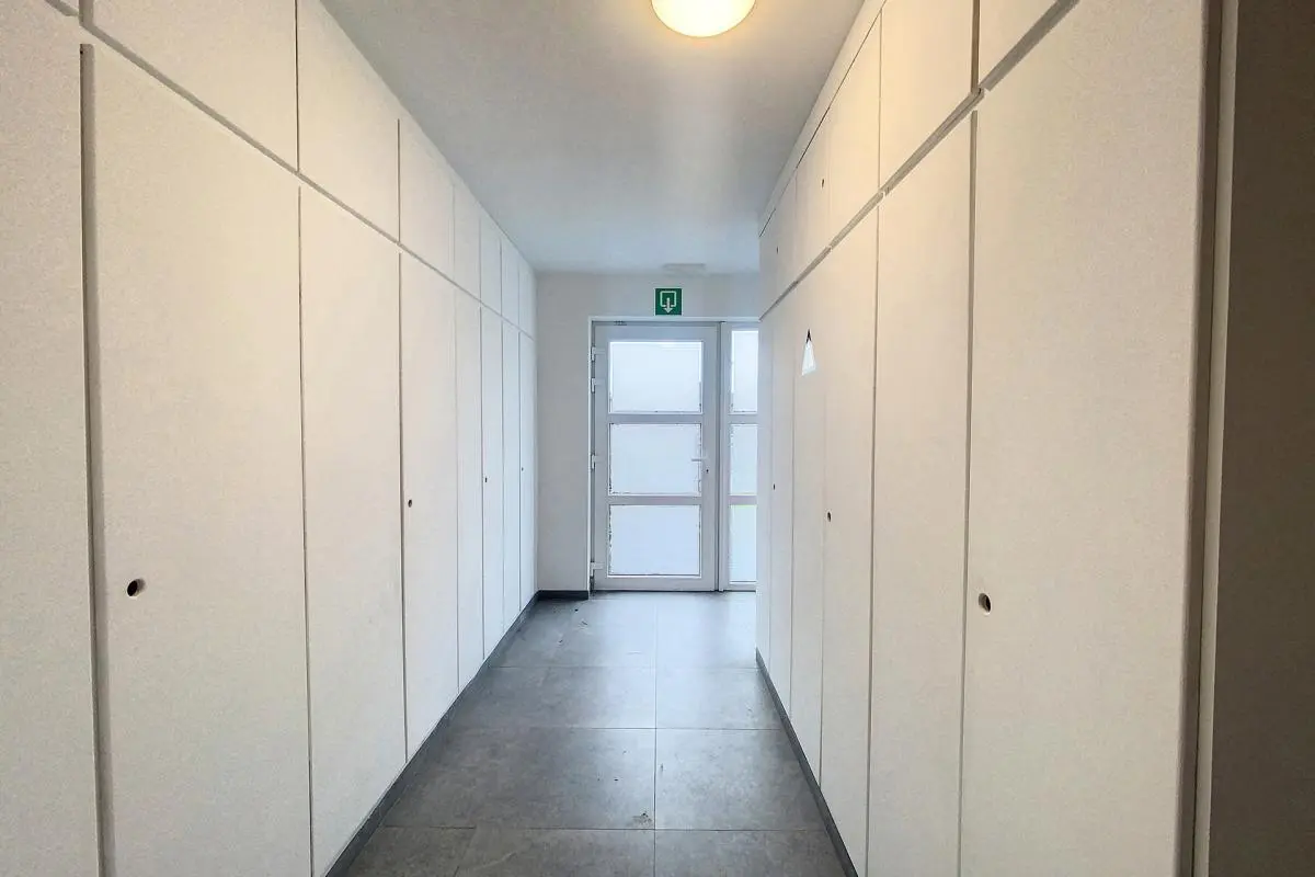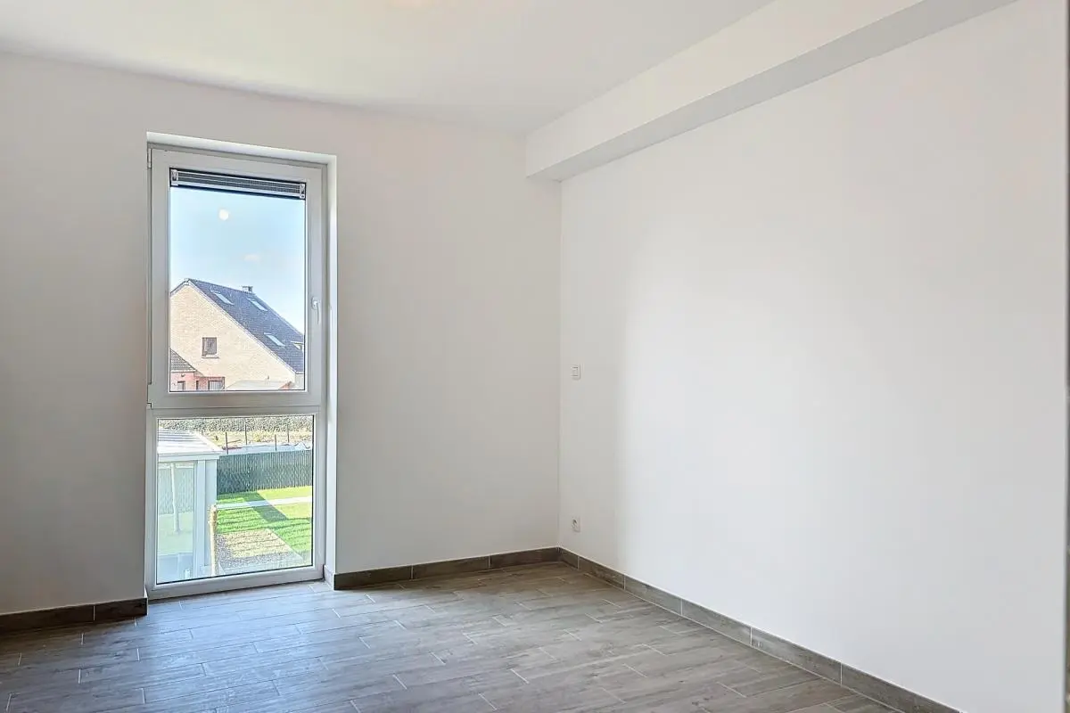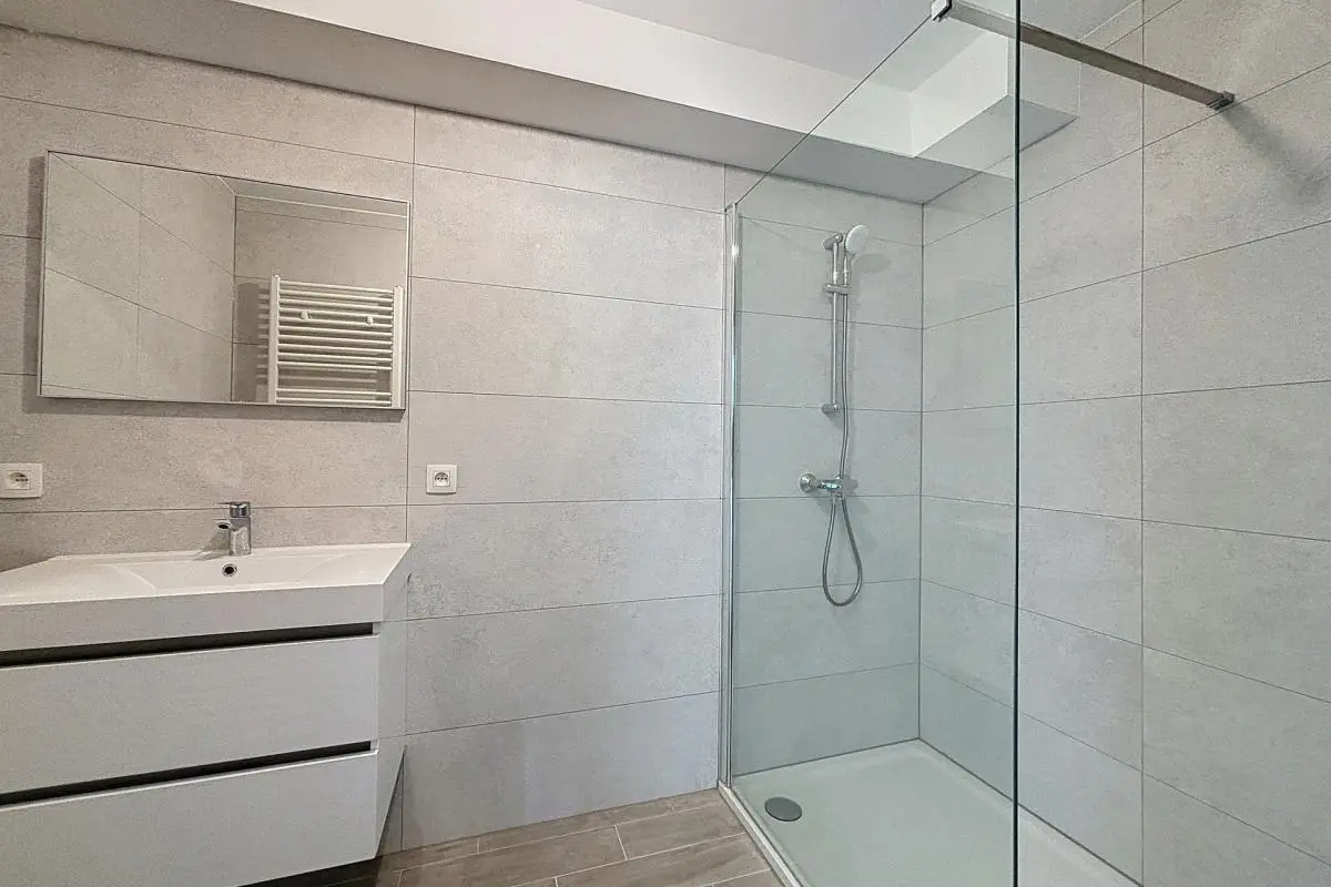 Dans une copropriété neuve, magnifique appartement avec terrasse-avant bien orientée. Il se compose d'un hall d'entrée, une magnifique cuisine américaine entièrement équipée avec four, hotte, taque, frigo, congélateur, lave-vaisselle, une buanderie avec chaudière et espace machine à laver, séchoir à condensation, un wc séparé, une salle de douche avec évier et enfin deux chambres avec vue sur la verdure. L'appartement sera totalement équipé au niveau des luminaires et des rideaux/stores seront placés. L'appartement vient d'être peint, le futur locataire peut déposer ses valises. Emplacement de parking intérieur sécurisé. PEB B. DISPONIBLE TOUT DE SUITE.