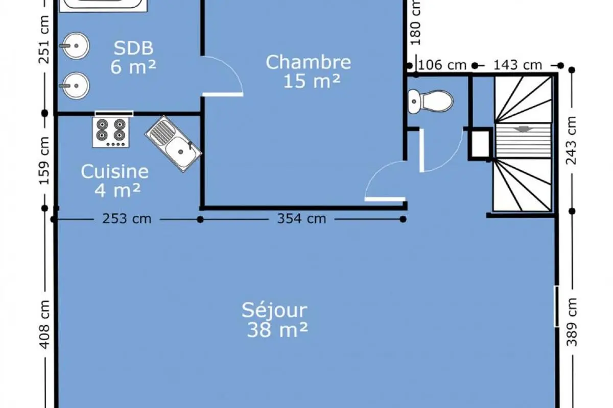 - Salle de séjour : 38 m²