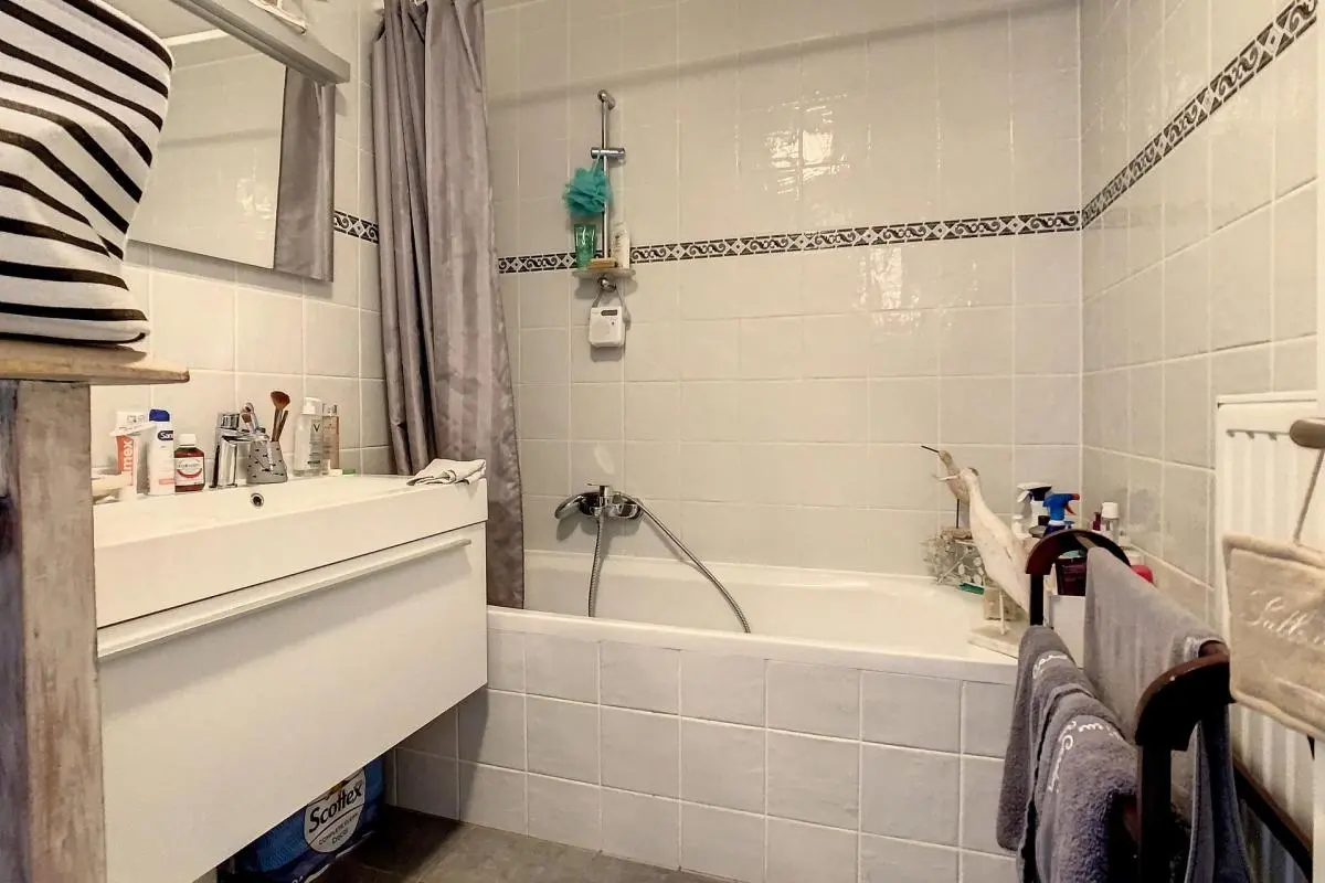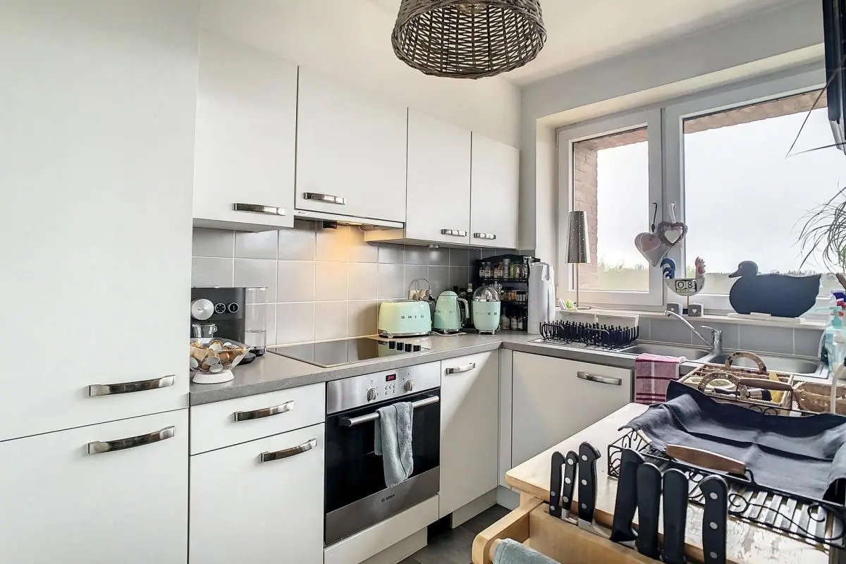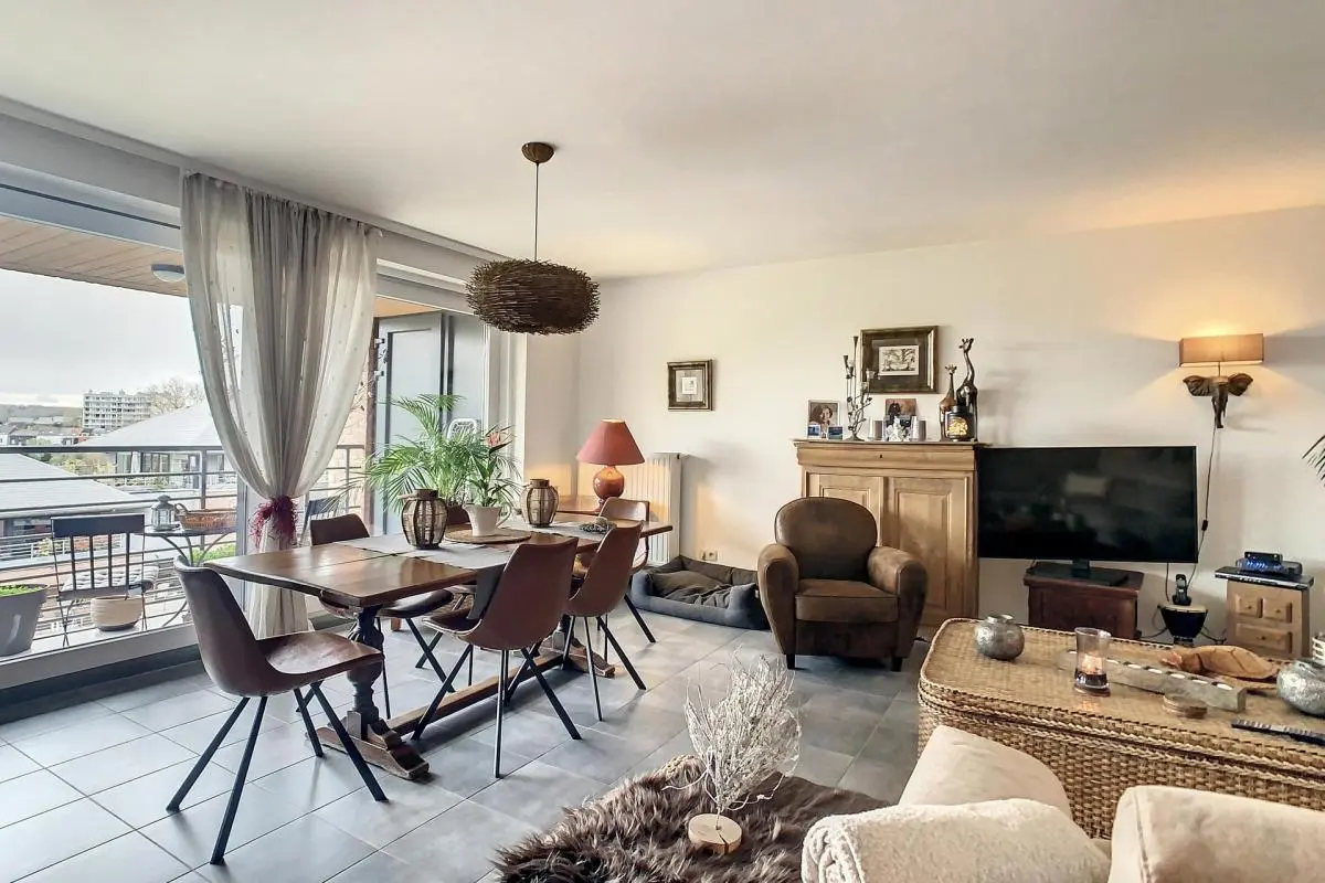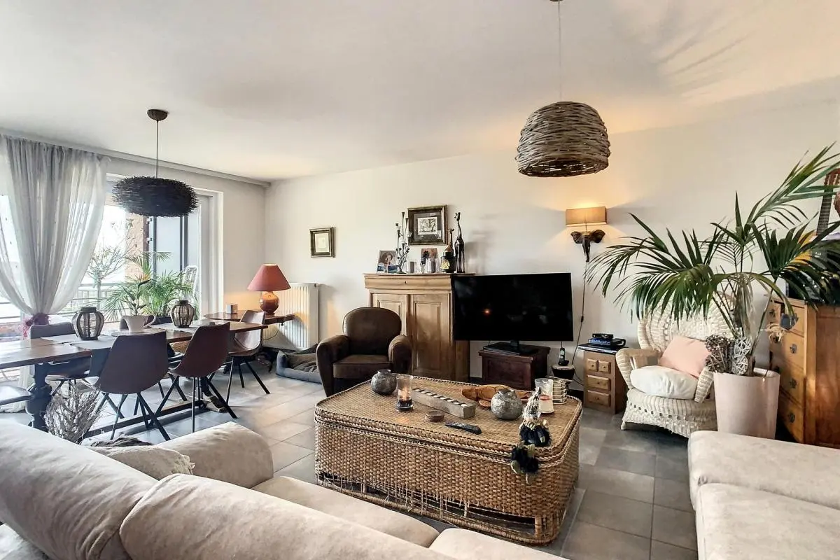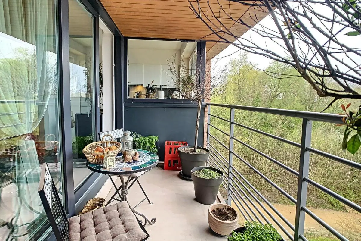 Dans une copropriété récente et très agréable, magnifique appartement libre au 01/08/2024 voir 01/09/2024 en fonction du futur candidat. Celui-ci se compose d'un hall d'entrée, un grand espace séjour avec terrasse et cuisine équipée avec réserve. Hall de nuit desservant deux belles chambres, ainsi qu'un wc individuel et une buanderie avec espace machine à laver et séchoir ainsi que la VMC double flux. Charges de 125 € par mois comprenant l'eau chaude, le chauffage ainsi que les divers communs. Parking privatif et cave. PEB A