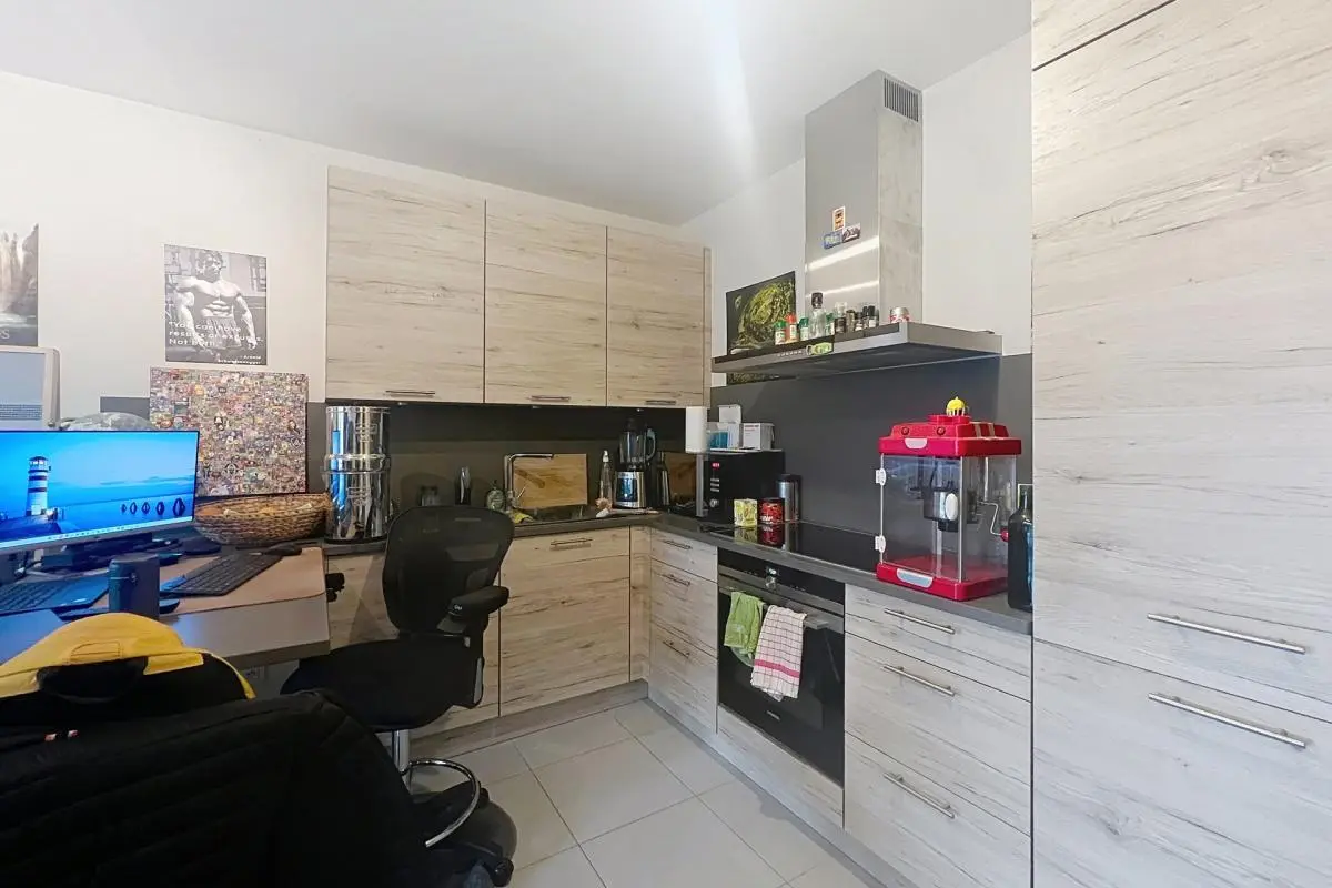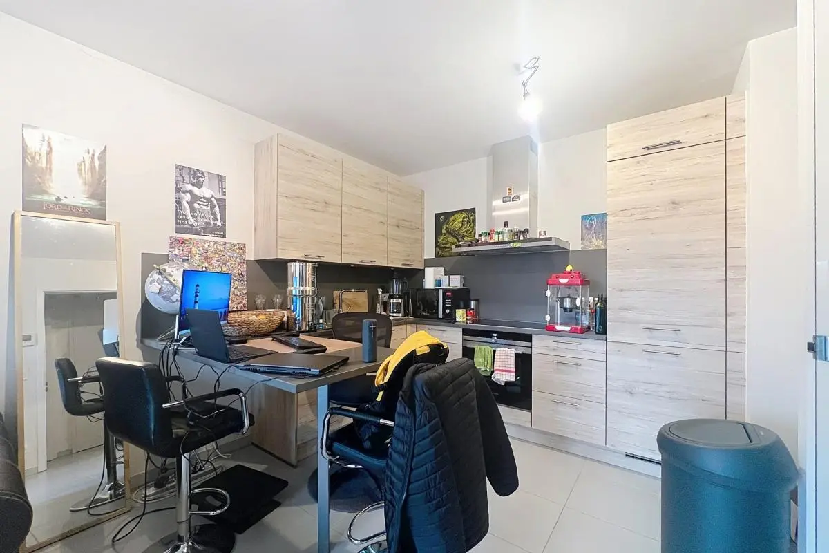À louer, superbe appartement une chambre en parfait état, disponible à partir du 1er décembre 2025. Il se compose d’un séjour lumineux, d’une cuisine équipée, d’une chambre spacieuse et d’une salle de bain moderne. L’appartement dispose également d’une belle terrasse, d’une cave privative et d’un emplacement de parking. La porte blindée garantit une sécurité optimale. Grâce à son excellent PEB A, les consommations sont très faibles, tout comme les charges. Situé dans un quartier calme et proche de toutes les commodités, ce bien offre un cadre de vie agréable et pratique. Aucuns travaux à prévoir, il est prêt à accueillir ses nouveaux occupants.