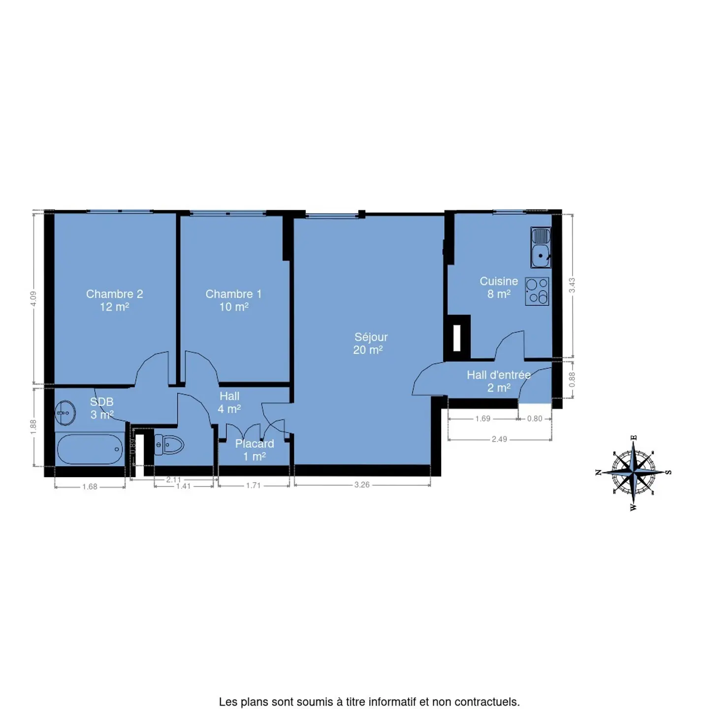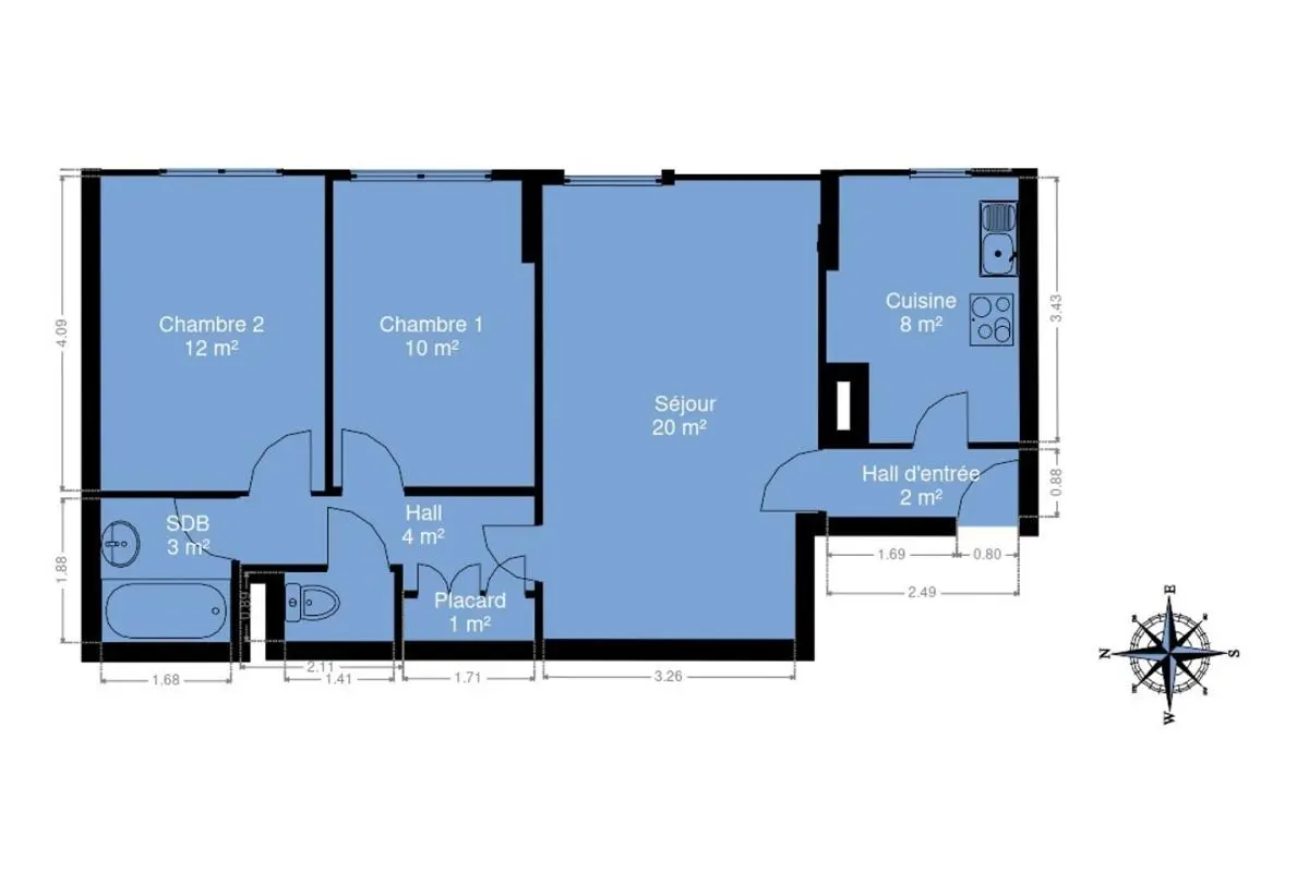 - Chambre 1 : 12 m²