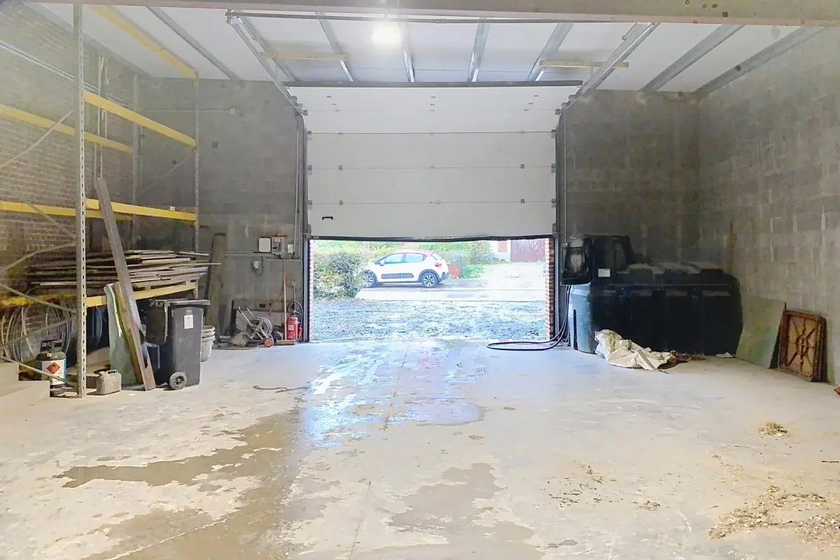 Splendide entrepôt récent avec porte sectionnelle de 4m de haut. libre immédiatement. Possibilité électricité, eau et alarme.