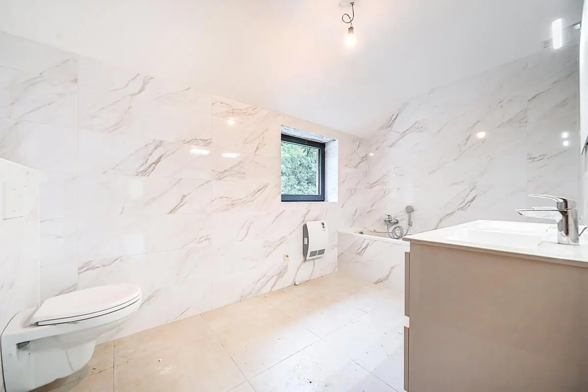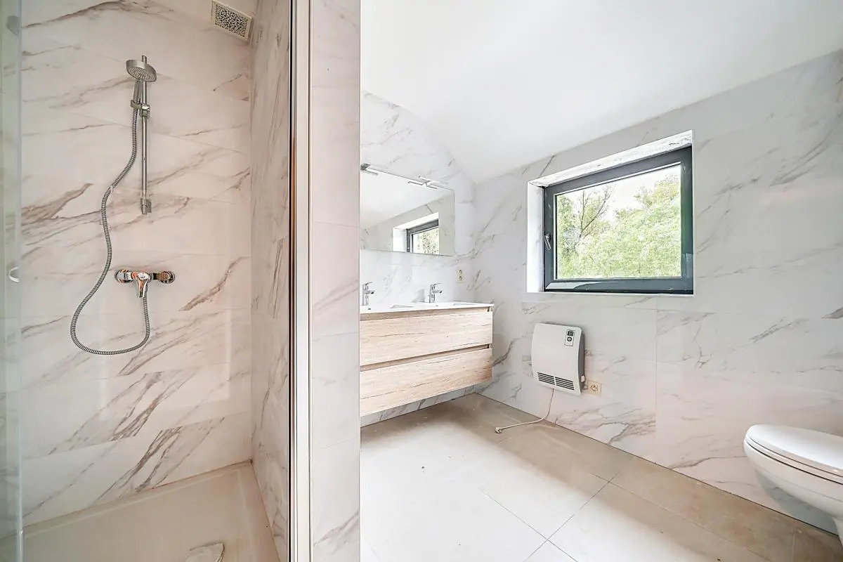 En zone d'intérêt paysager, nous vous proposons en exclusivité cette magnifique villa 4 façades presque passive (reste les panneaux photovoltaïques à placer si souhaité) avec carport attenant érigée sur un terrain de 23,55 ares. Le bien donne sur un champ de coquelicot et une lisière de bois. La maison est totalement prête à vivre hormis la cuisine à installer, tout est fonctionnel, on peut y poser ses valises. PEB A. Le bien se trouve sous régime TVA 21%, quotte part terrain 100 000 €. Frais de raccordement et d'acte urbanistique à rajouter au dessus du prix toujours à charge de l'acheteur. Citerne d'eau de pluie de 7500l. Opportunité rare à saisir.