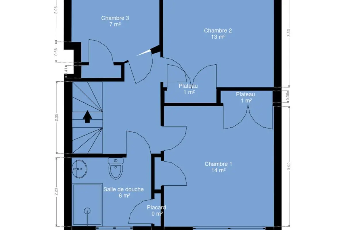 - Chambre 1 : 14 m²