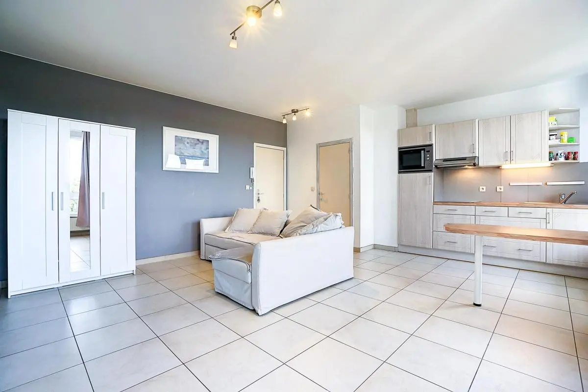 A proximité du parc de la Dodaine, nous vous proposons ce bel appartement une chambre entièrement rénové. Proximité directe du Shopping et de la Grand Place. Il se compose comme suit : un spacieux séjour avec cuisine américaine, un WC séparé, une chambre et une salle de douche avec espace machine à laver et séchoir. Charges 150 € comprenant tous les communs, les ascenseurs, l'eau et le chauffage. libre au 01/05/2026