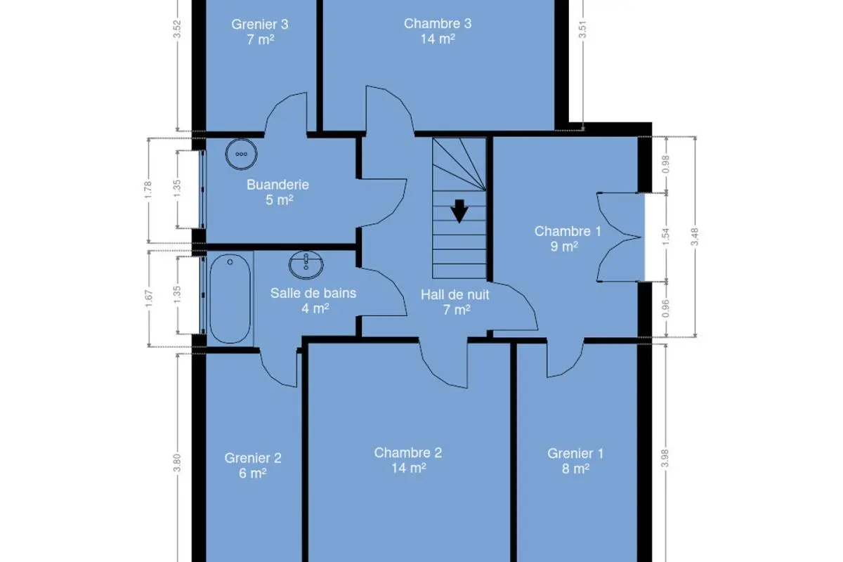 - Chambre 3 : 9 m²