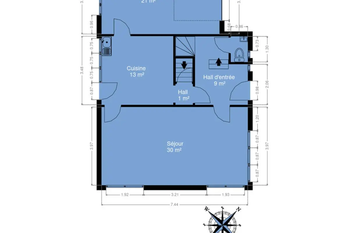 - Salle de séjour : 30 m²