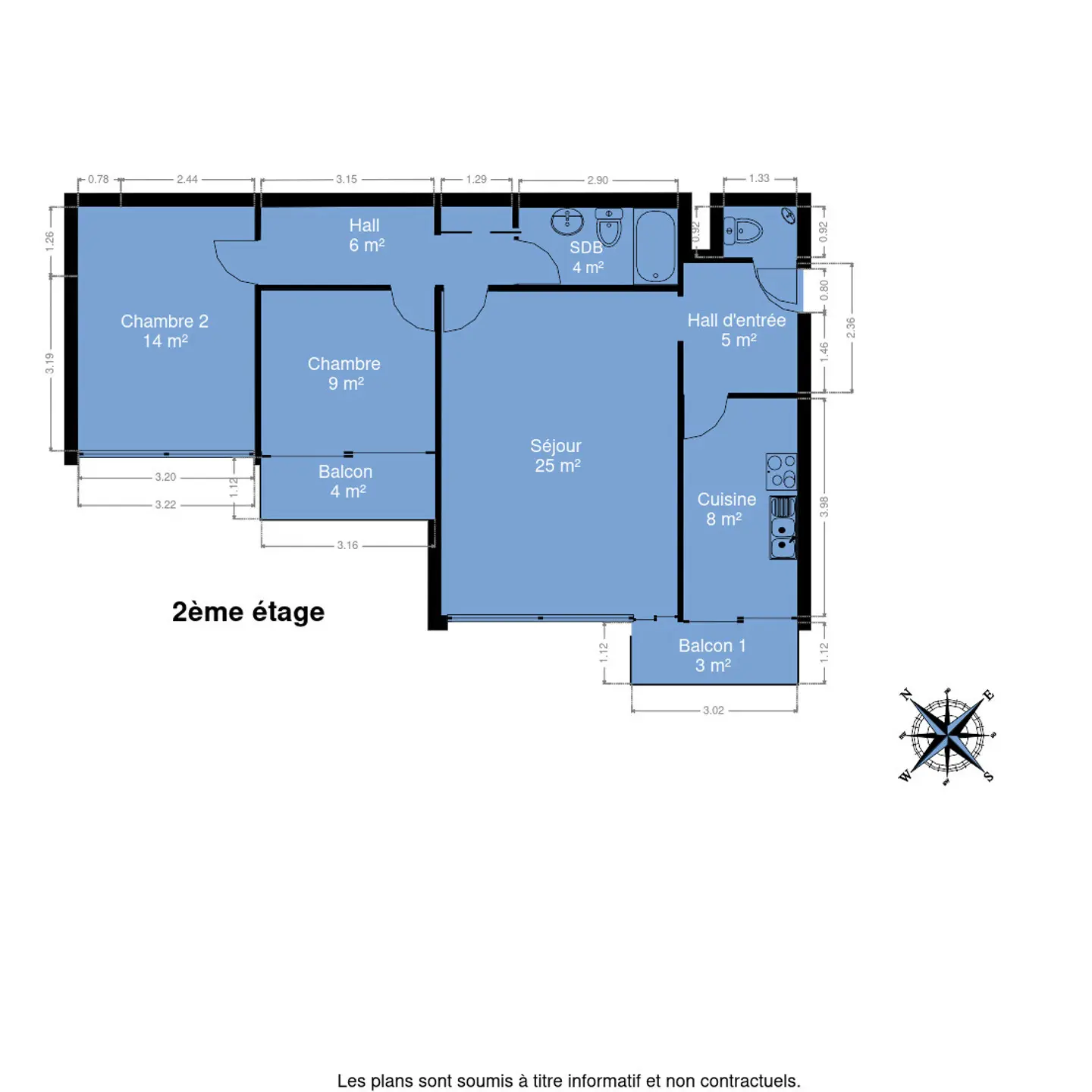 - Chambre 1 : 14 m²