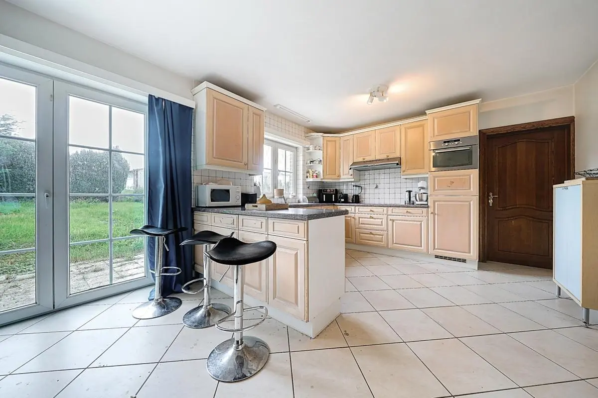 Située dans un environnement particulièrement calme et agréable, tout en restant à proximité immédiate des facilités (commerces, écoles, transports et axes principaux), cette spacieuse villa 4 façades séduira les amateurs de grands espaces et de confort. La maison se compose de 5 belles chambres ainsi que d’un bureau, idéal pour le télétravail ou l’exercice d’une profession libérale. Elle dispose également de deux salles de bains, permettant une organisation pratique et confortable pour toute la famille. Les volumes généreux de l’habitation offrent de nombreuses possibilités d’aménagement et de personnalisation selon vos besoins et vos projets. Son énorme potentiel en fait une opportunité rare sur le marché. À l’extérieur, vous bénéficierez d’un grand parking privatif pouvant accueillir plusieurs véhicules ainsi que de deux garages, un véritable atout en termes de praticité et de stockage. La villa est équipée de 24 panneaux photovoltaïques, garantissant une meilleure performance énergétique et une réduction significative des coûts liés à la consommation. Un bien idéal pour une grande famille ou pour toute personne recherchant une propriété spacieuse dans un cadre paisible. Informations et visites sur demande.